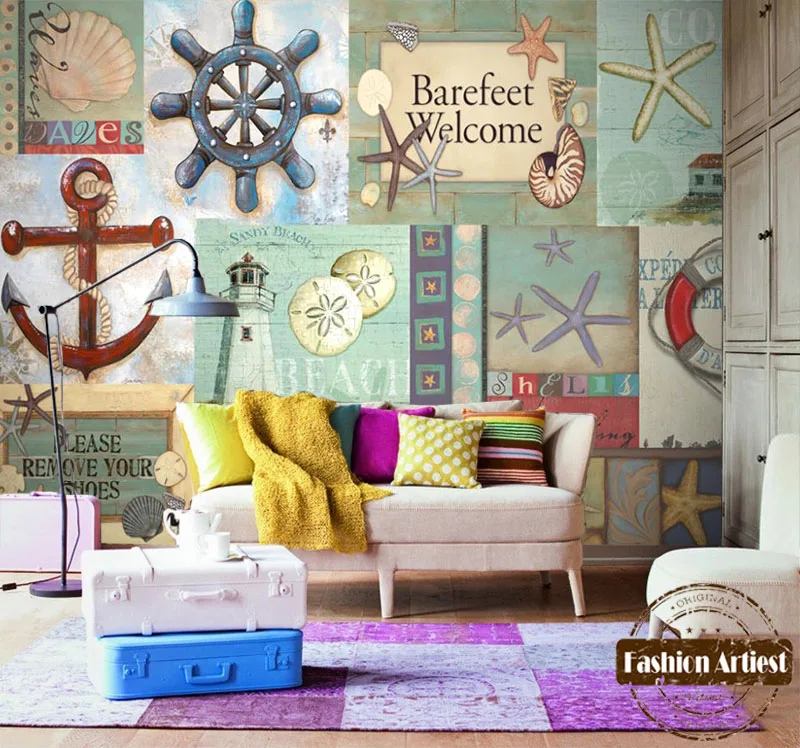 Us 29 8 Kustom Damai Kartun Wallpaper Mural Mediterania Modern Art Pelaut Sea View Poster Sofa Kamar Tidur Latar Belakang Ruang Tamu In Wallpaper