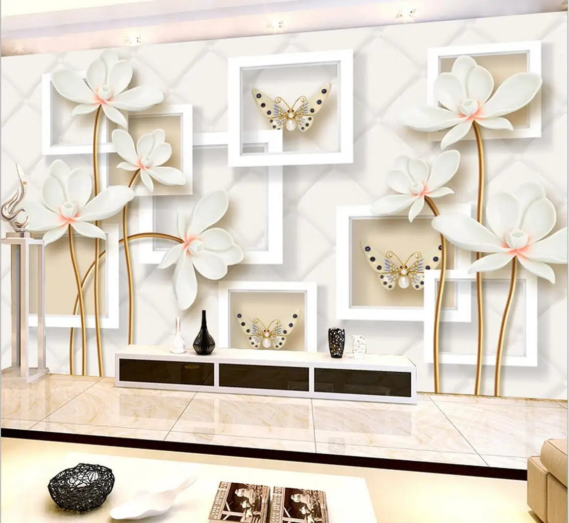 Us 10 19 49 Off 3d Abstrak Mural Waterlily Kupu Kupu Wallpaper Papier Peint Feuillage Ruang Tv Backsplash Foto Mural Dinding Kertas Gulungan Di