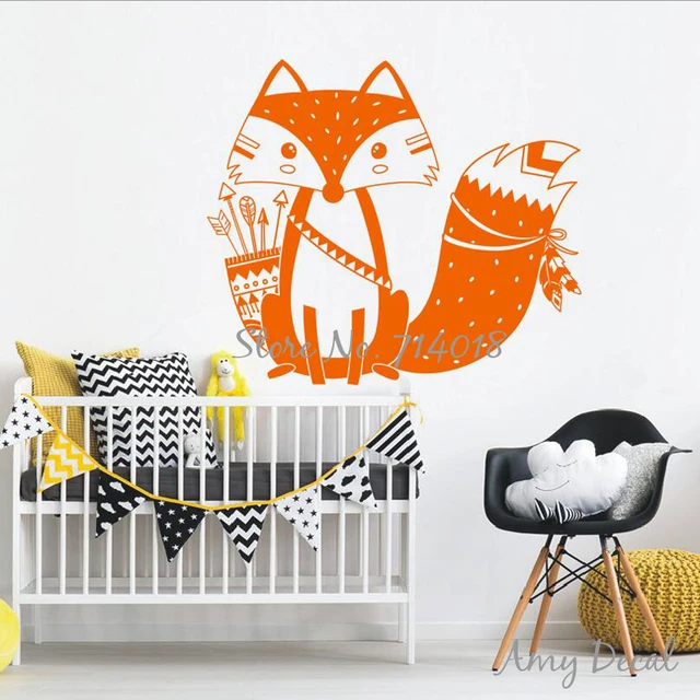 Us 6 14 34 Off Dewa Tribal Fox Wall Decal Lucu Woodland Fox Wall Sticker Untuk Kids Room Nursery Wall Art Tattoo Hadiah Natal Vinyl Mural A734j Di