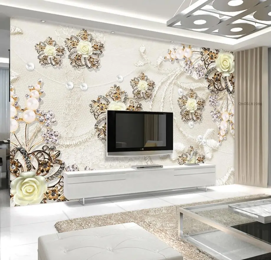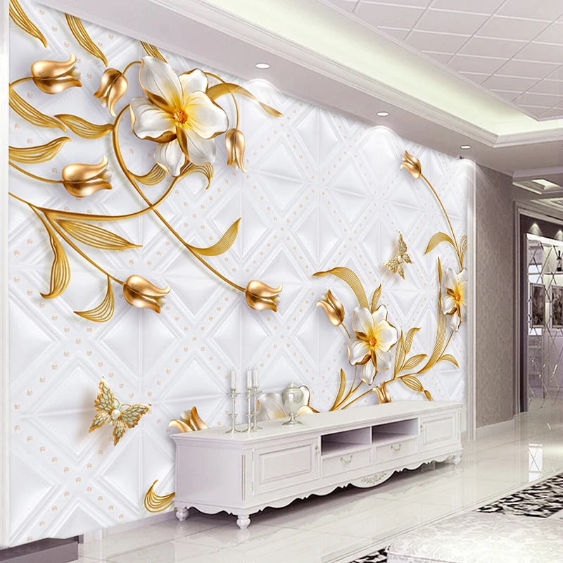 Us 8 4 44 Off Wellyu Papel De Parede Custom Wallpaper 3d Luxury Gold Jewelry Flowers Butterfly Tv Wall Wallpaper For Walls 3 D Behang In Wallpapers