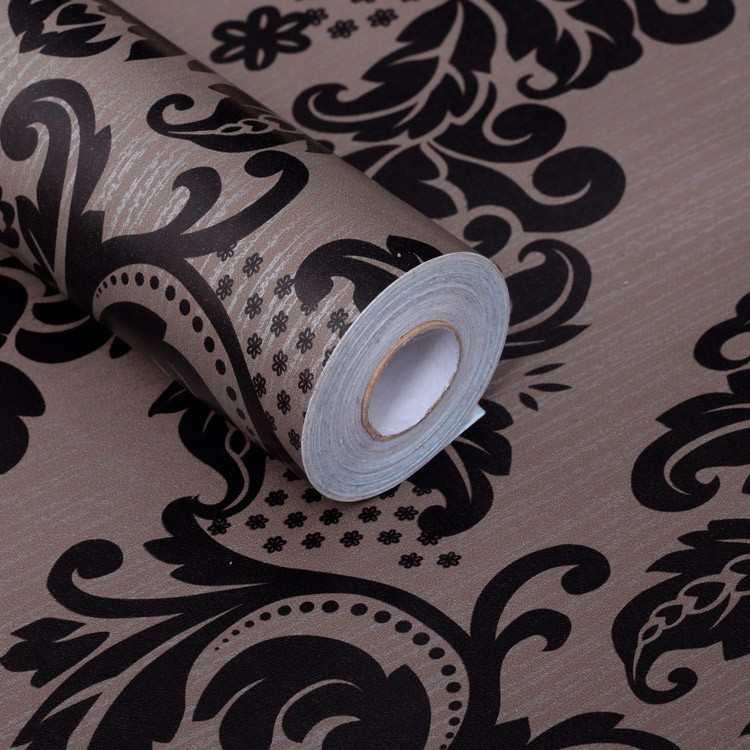 Wallpaper Dinding Warna Abu Gelap Corak Emas Roll Kecil