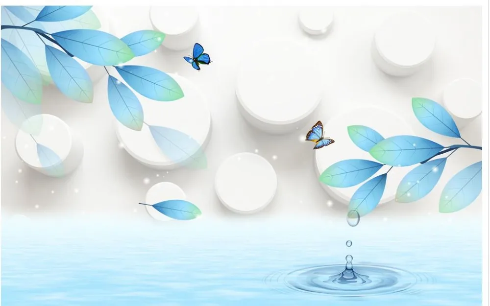 Us 11 84 63 Off Custom Photo Wallpaper Blue Leaves Water 3d Wallpaper Tv Background Wallpaper The Living Room Sofa Backdrop Mural In Wallpapers From