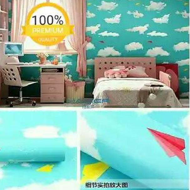 Wallpaper Murah Sticker Dinding Motif Awan Biru 10m Stiker