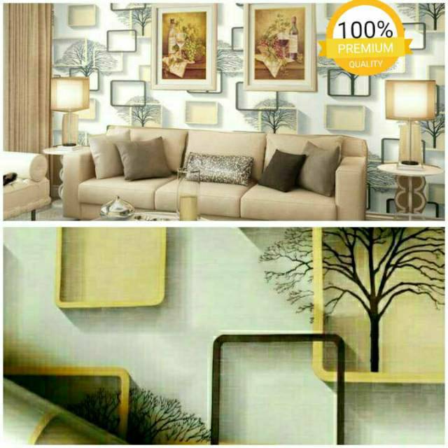 Wallpaper Dinding Kotak Kuning Pohon 3d Elegant Minimalis