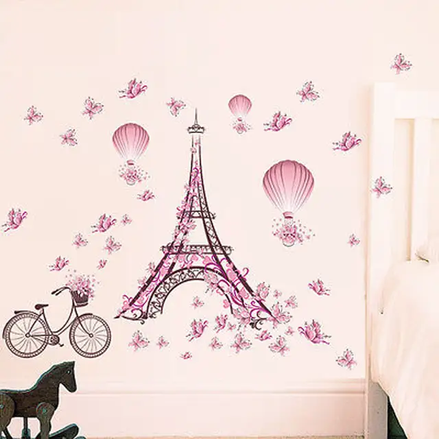 Us 0 57 40 Off Romantic Paris Wall Sticker For Kids Rooms Eiffel Tower Flower Butterfly Fairy Wall Art Decal Home Decor Mural Wallpaper Sticker In