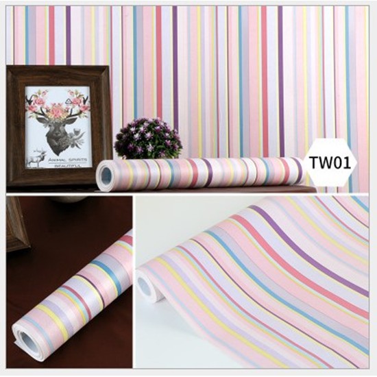 Wallpaper Dinding Motif Garis Pelangi 45cmx10m