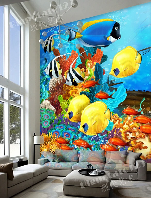 Us 13 05 55 Off Terbaru 3d Mural Mimpi Indah Biru Warna Dasar Laut Ikan Laut Dalam Ruang Tamu Sofa Tv Dinding Kamar Tidur Anak Wallpaper In