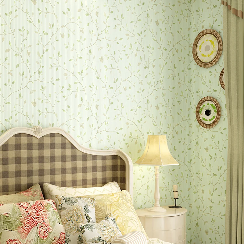 Us 35 5 33 Off Pedesaan Pedesaan Kertas Dinding Daun Dekorasi Rumah Biru Hijau Pohon Merah Muda Wallpaper Roll Untuk Pernikahan Kamar Dekorasi Kamar