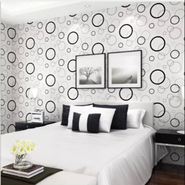 Jual Wallpaper Dinding Ruang Tamu Rumah Kamar Tidur Murah Polkadot Hitam Kota Surabaya Titik Mewah Tokopedia
