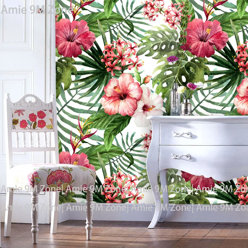 Tuya Art Bunga Dan Daun Cat Air Mural Dinding Kertas Untuk