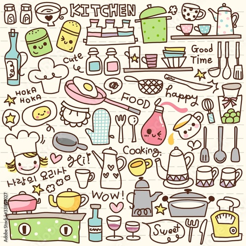Cute Doodle Kitchen Stuff Stock Image And Royalty Free