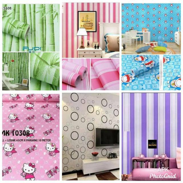 Wallpaper Dinding Tembok Stiker Pvc Salur Pink Ungu Bambu Hello Kitty Doraemon Polkadot Wallpapers
