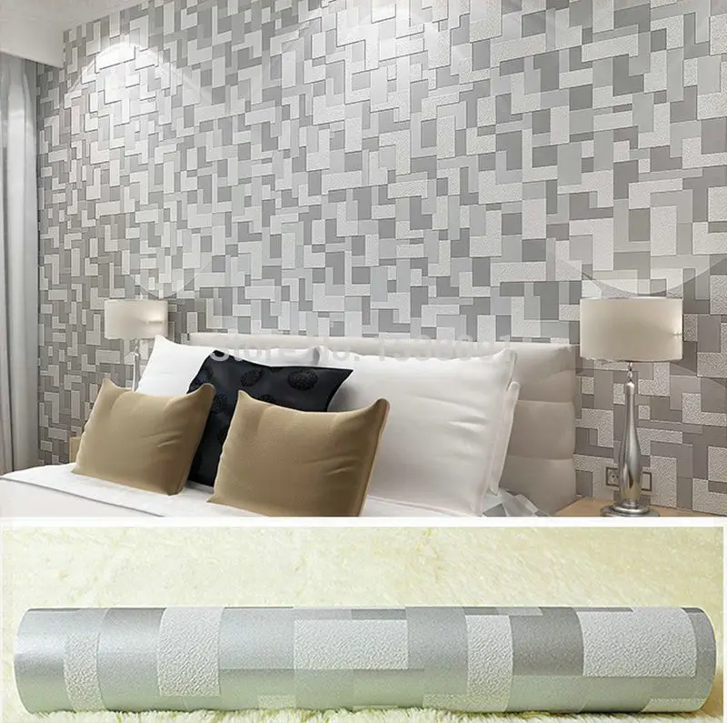 Non Woven Embossed 3d Stereoscopic Wallpaper Gray Simple