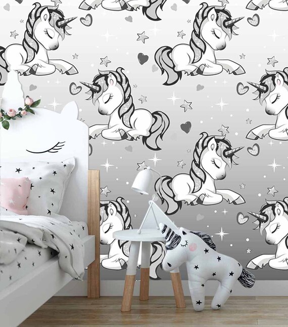 Nursery Wallpaper Unicorn Black And White Wallpaper Girls Remove Wallpaper Mural Self Adhesive Wallpaper Peel And Stick Wallpaper X10