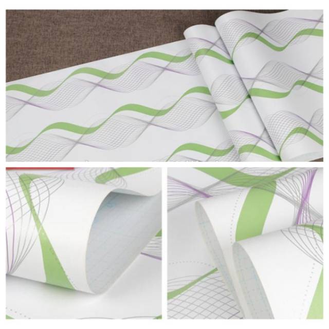 Grosir Murah Wallpaper Sticker Dinding Salur Hijau Spiral Minimalis Indah Keren Elegan Ukuran 10m