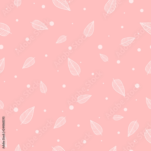 Cute White Tree Or Leaf And Dot Vector Seamless Pattern On