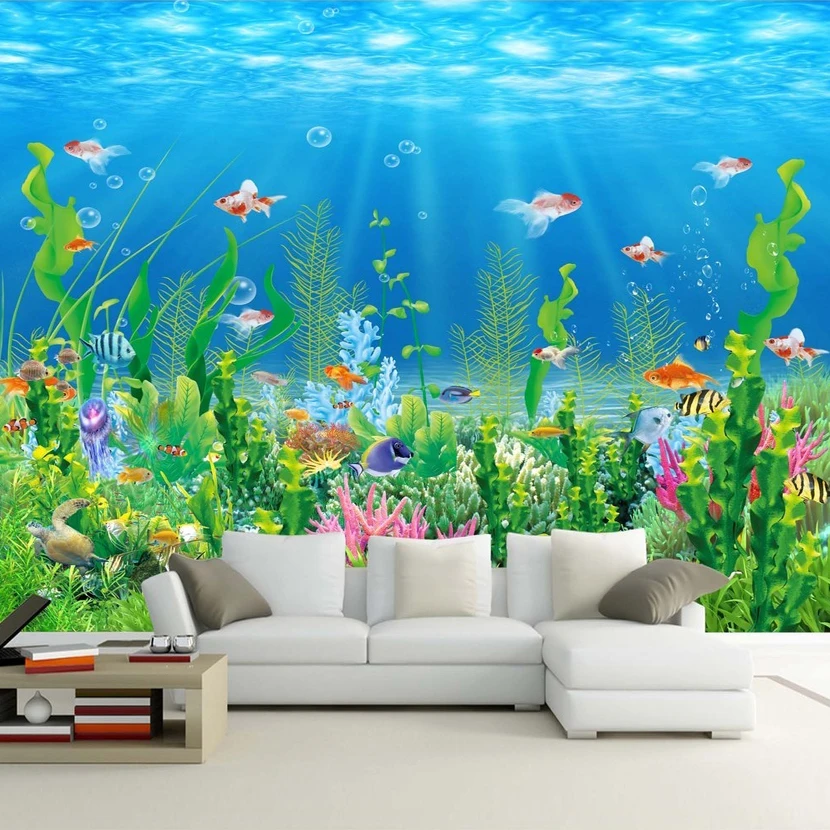 Kartun Dasar Laut Ikan Rumput Laut Dinding Mural Custom Kids Wallpaper Untuk Dinding Kamar Tidur Anak Kertas Dinding Dekorasi Rumah Tv Latar Belakang
