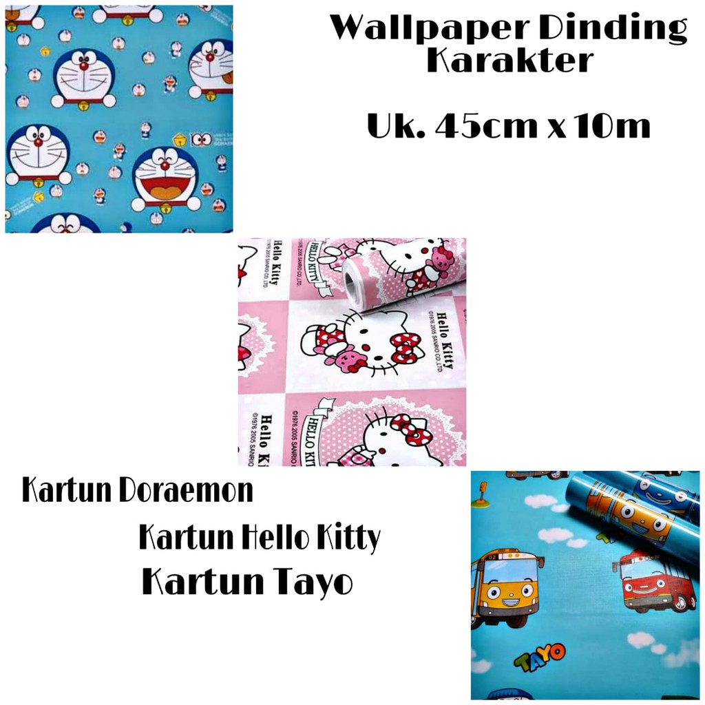 Terlaris Wallpaper Dinding Hello Kitty Doraemon Hk Stitch Tayo Frozen Keropi Ukuran 45 Cm X 10 M