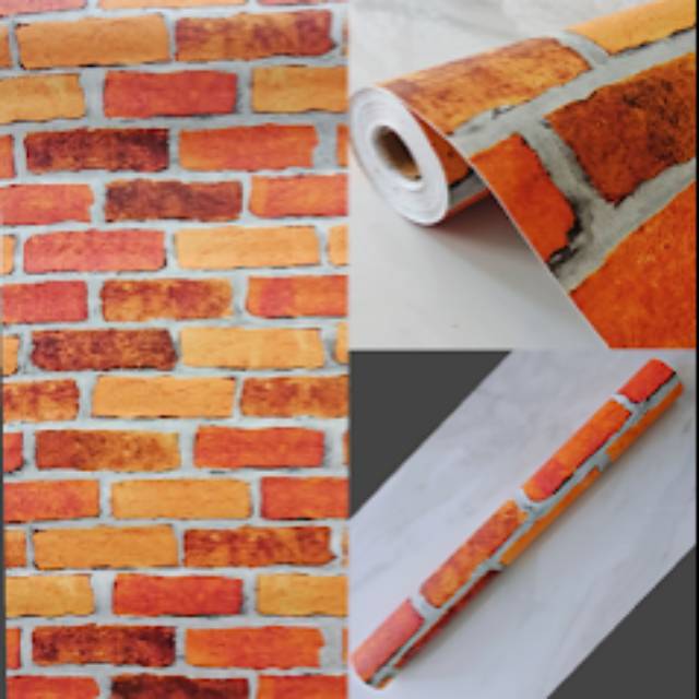 Wallpaper Dinding Motif Bata Orange Size 45cm X 10m