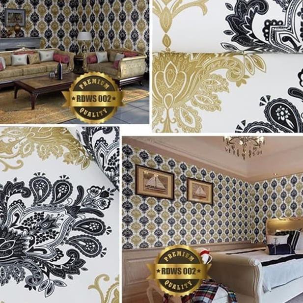 Mㅁ Cbg 064 10m X 45cm Wallpaper Dinding Motif Gold Ungu Hitam Biru Silver Batik Murah Elegan Dan Ber