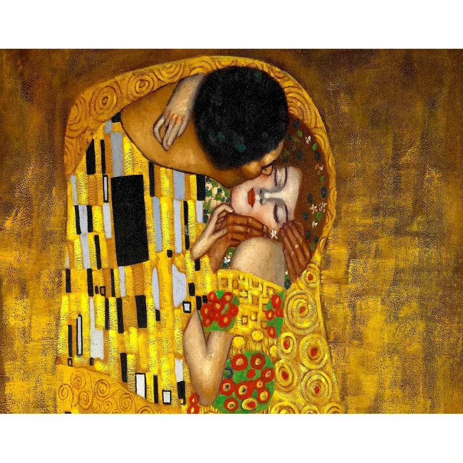 Us 4 96 27 Off Kustom Kanvas Wall Decor Poster Gustav Klimt Gustav Klimt Ciuman Lukisan Wallpaper Stiker Ciuman Kantor Dinding Mural 2594 In Wall