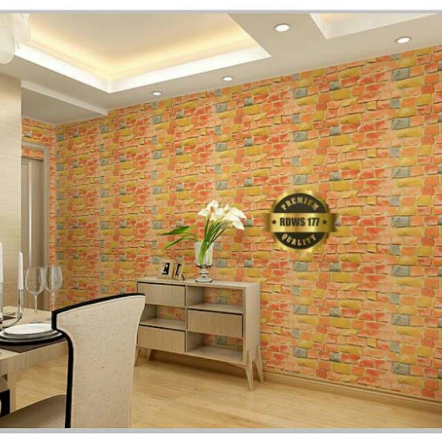 Promooo Wallpaper Dinding Batu Bata Orange Coklat Multi Warna Alam 3d Natural