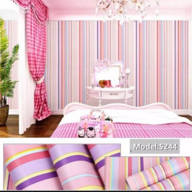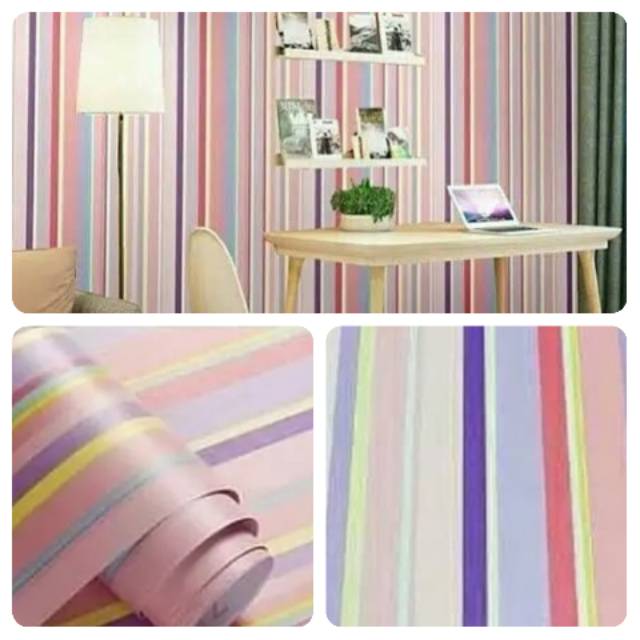 Jual Wallpaper Dinding Salur Pink Hijau Biru Ungu Pelangi Warna Elegant Jakarta Pusat Salma Shop Tokopedia