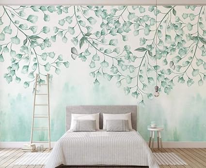 Wall Mural 3d Wallpaper Hand Painted Fresh Green Leaves