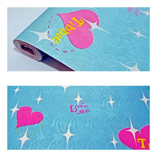 Grosir Murah Wallpaper Stiker Dinding Warna Biru Motif Love Warna Pink Bagus Untuk Kamar Tidur