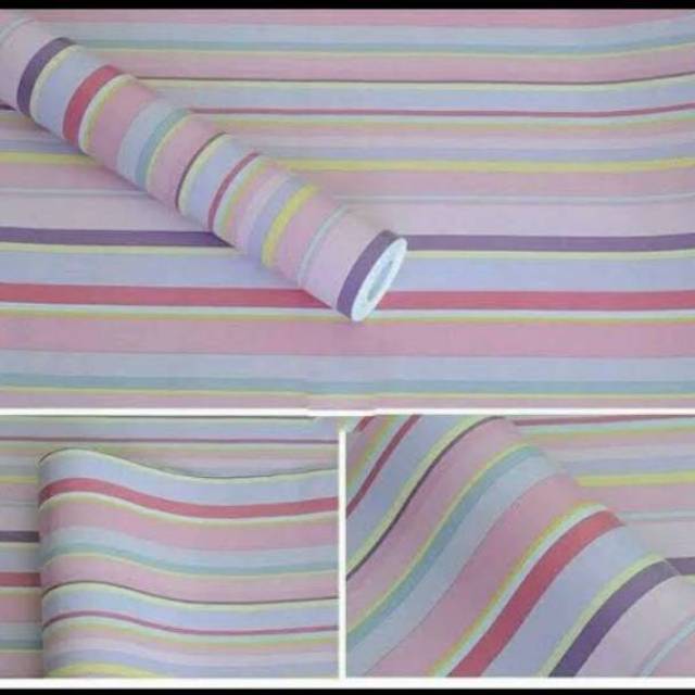 Termurah Grosir Wallpaper Sticker Dinding Garis Kombinasi Warna Pelangi Bagus Minimalis