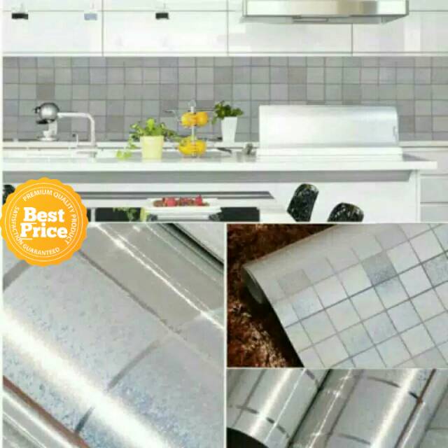 Grosir Termurah Wallpaper Sticker Dinding Dapur Abu Abu Kotak Silver Cantik 5 Meter
