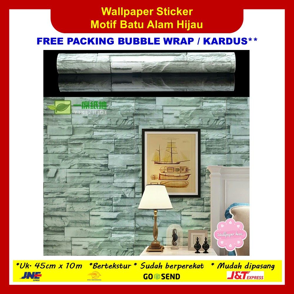 Wallpaper Sticker Dinding 45cm X 10m Batu Alam Hijau Walpaper Stiker