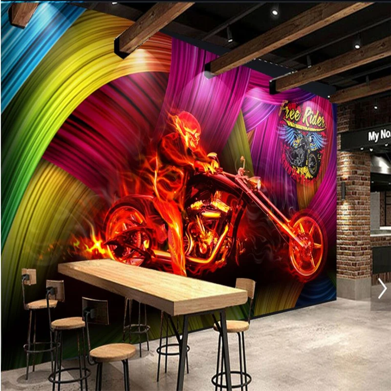 Us 8 4 44 Off Beibehang Warna Warni Keren Sepeda Motor Bar Klub Malam Dinding Latar Belakang Kustom Besar Mural Wallpaper Hijau Papel De Parede