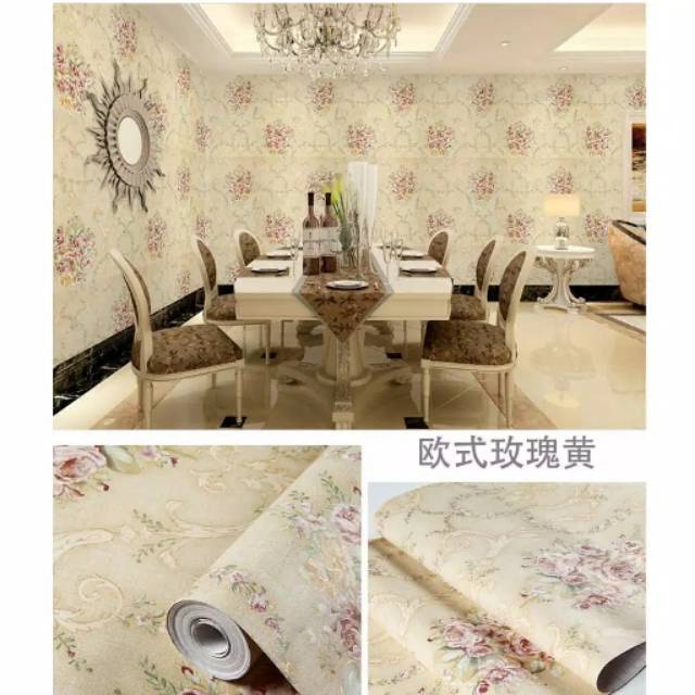 Jual Wallpaper Dinding Klasik Soft Cream Biru Bunga Pink Kuning Jakarta Utara Mansion Wallpaper Tokopedia