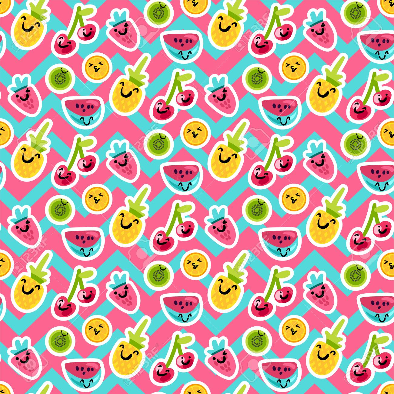 Fruits Seamless Color Vector Pattern Zigzag Background With