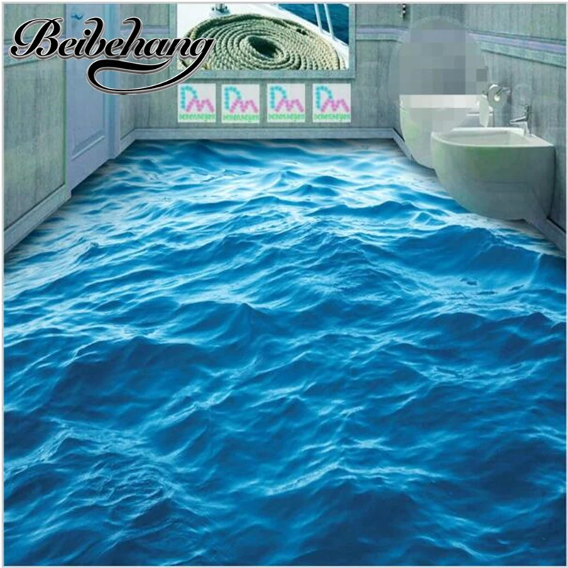Us 16 8 44 Off Beibehang Menancapkan Pvc Wallpaper 3d Lantai Modern Kustom Hd Biru Laut Gelombang Riak Non Slip Tahan Air Menebal In Wallpaper From