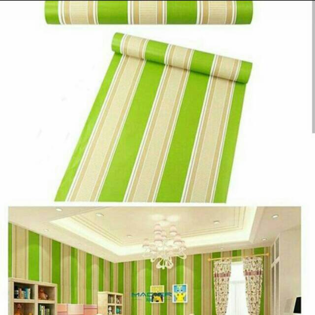 Wallpaper Sticker Dinding Hijau Daun Garis 45cm X 10m