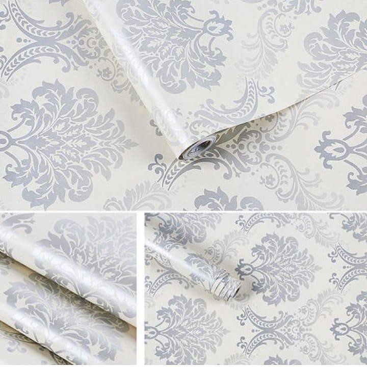 Wallpaper Dinding Pvc Wallsticker Dinding Panjang 10 M Dan Lebar 45cm Batik Silver