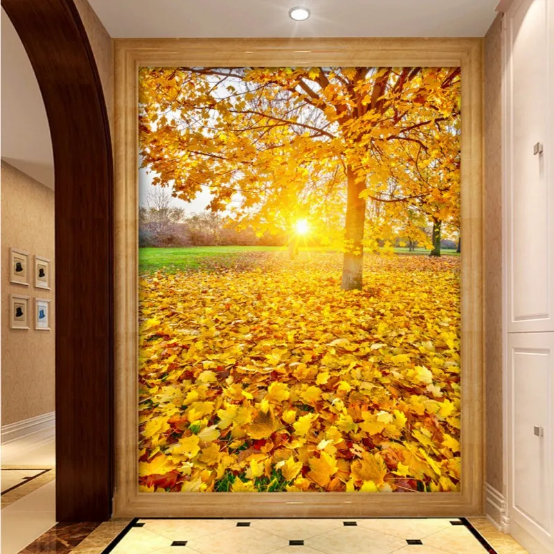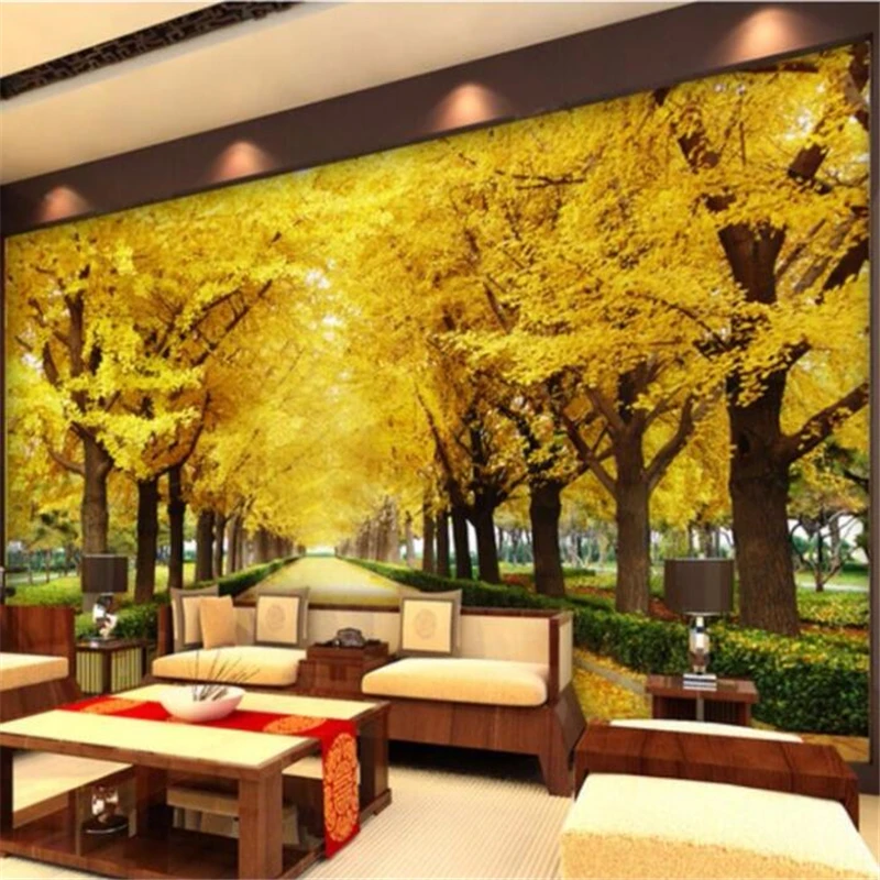 Us 12 61 30 Off Foto Wallpaper Indah Emas Cerah Pohon Jatuh Daun Mural Restoran Kamar Tidur Pintu Masuk Wallpaper Ruang Tamu Wallpaper In Wallpaper