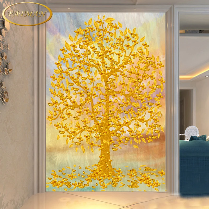 Us 11 05 25 Off Kustom 3d Foto Wallpaper Emas Pohon Wallpaper Mulus Wallpaper Pintu Masuk Lorong Mural Wallpaper Papel De Parede In Wallpaper From