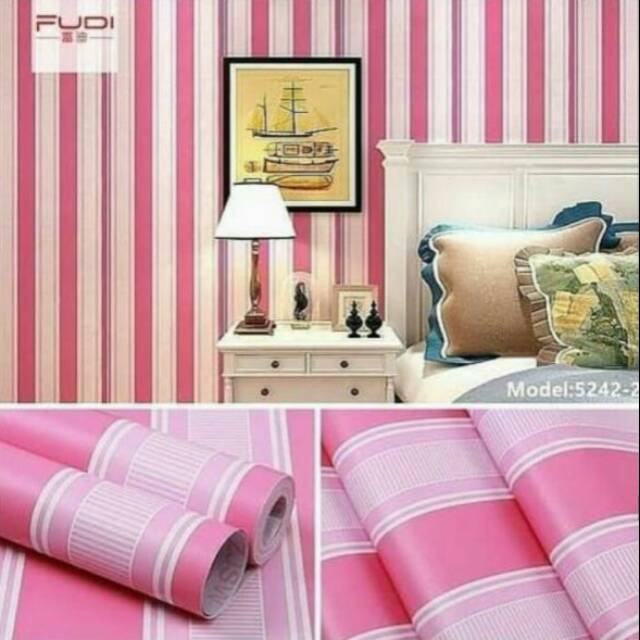 Cod Murah Wallpaper Dinding Sticker 45cmx10m Dinding Bata Garis Batik Karakter