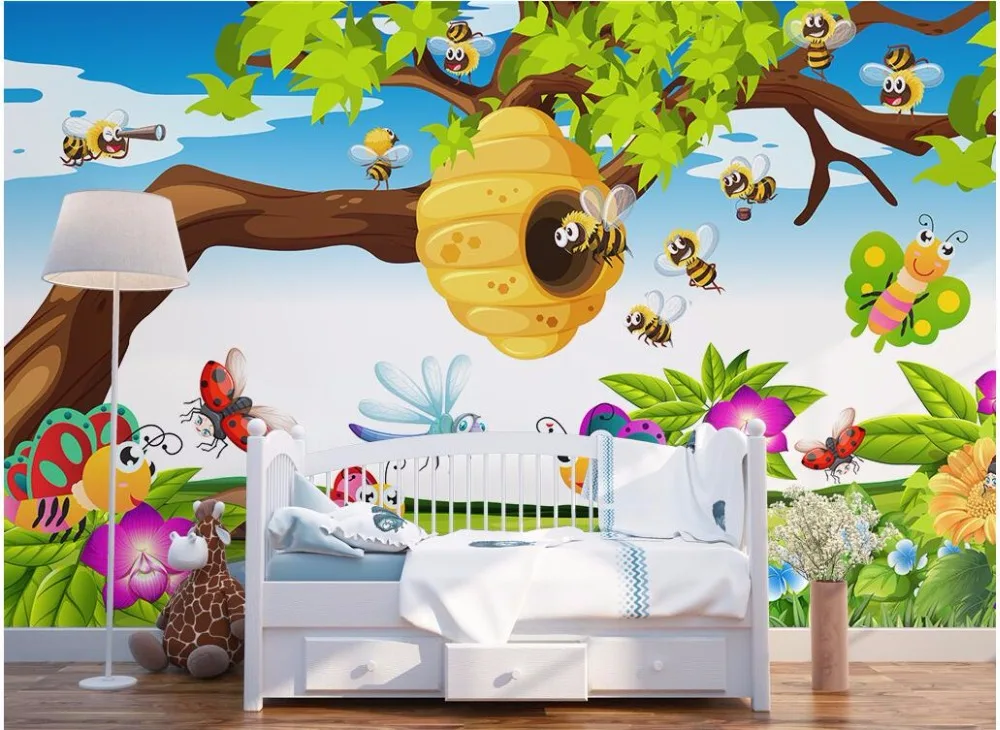 Us 13 93 50 Off Kustom Foto Mural 3d Wallpaper Kamar Lucu Hewan Lebah Dan Kupu Kupu Anak Room 3d Wall Mural Wallpaper Untuk Dinding 3 D In Wallpaper