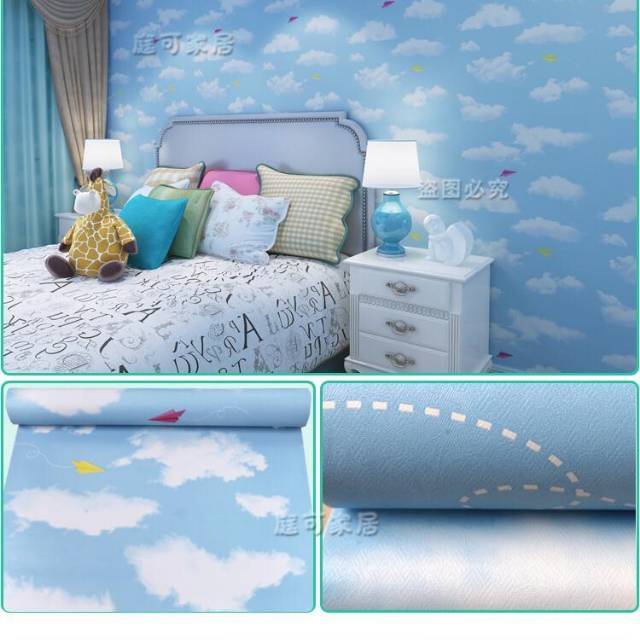 Wallpaper Dinding Murah 5 Meter Wps184 Motif Awan Biru Terjangkau Lucu Keren