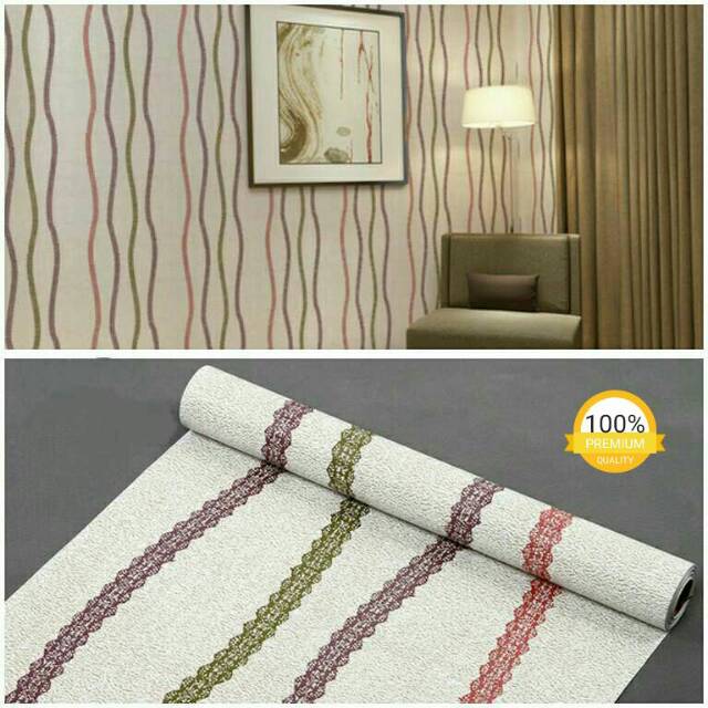 Wallpaper Sticker Dinding Ruang Tamu Kream Garis Grafis Modern Pinx Ungu Hijau Elegan Murah Terlaris