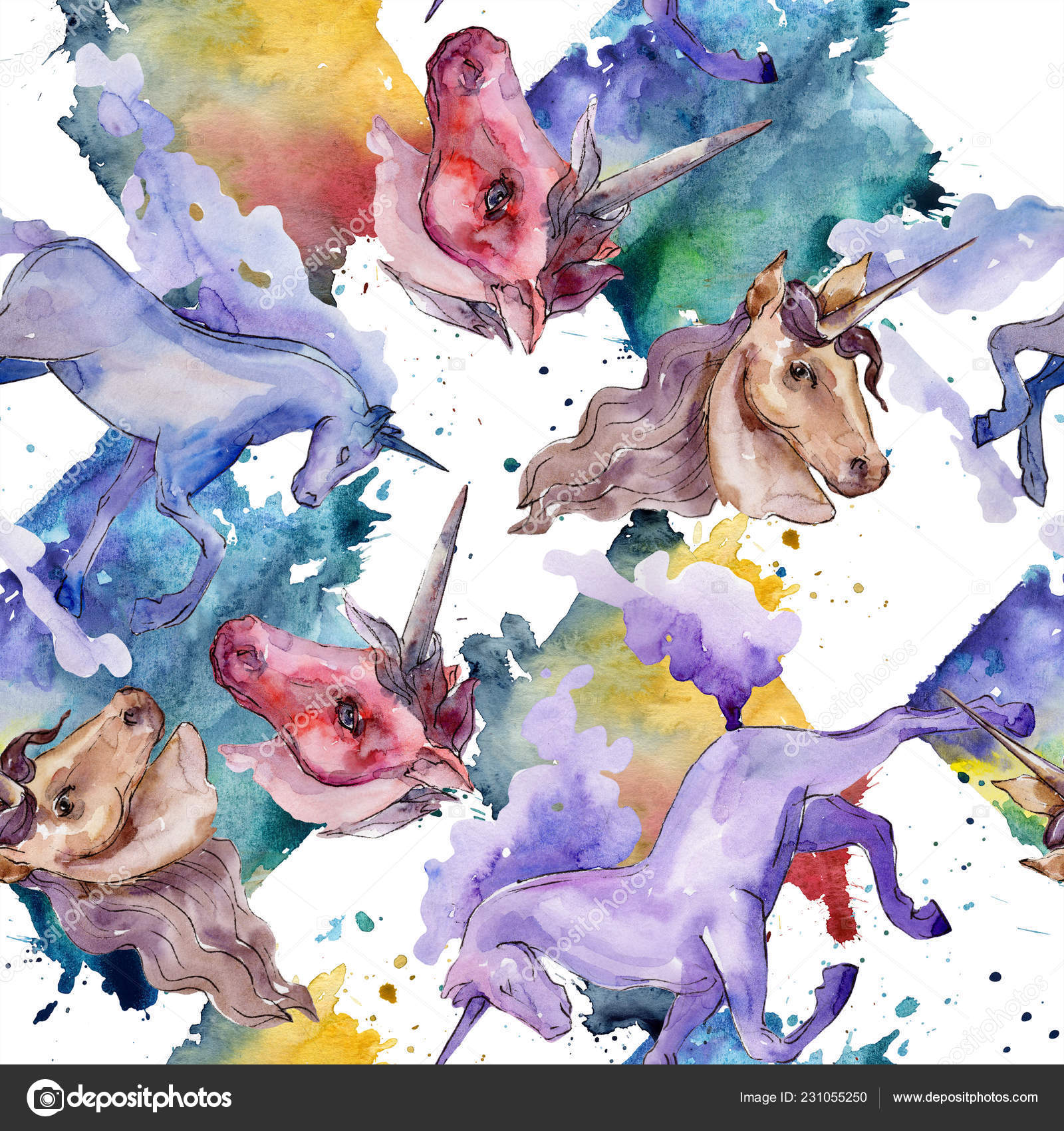 Cute Unicorn Watercolor Illustration Watercolour Isolated Seamless Background Pattern Fabric Wallpaper Print Texture Drawing