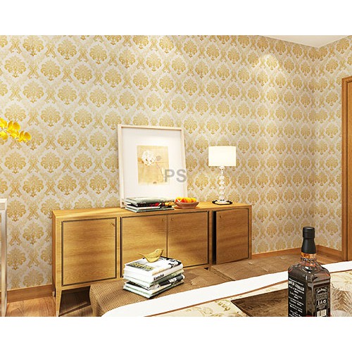 Wallpaper Stiker Dinding Kamar Termurah Kuning Gold Batik Hijau Mewah Elegan Terlaris 10 M X 45 Cm