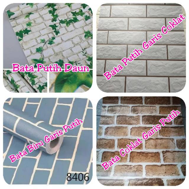 10 Meter X 45 Cm Wallpaper Dinding Sticker Diding Motif Bata Putih Daun Bata Coklat Bata Biru