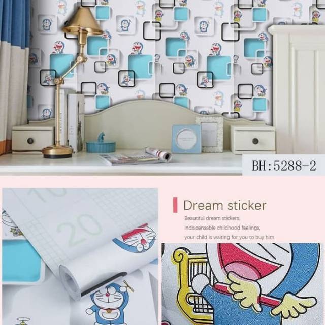 Wallpaper Dinding Doraemon Kotak 3d Ukuran 45cm 10m