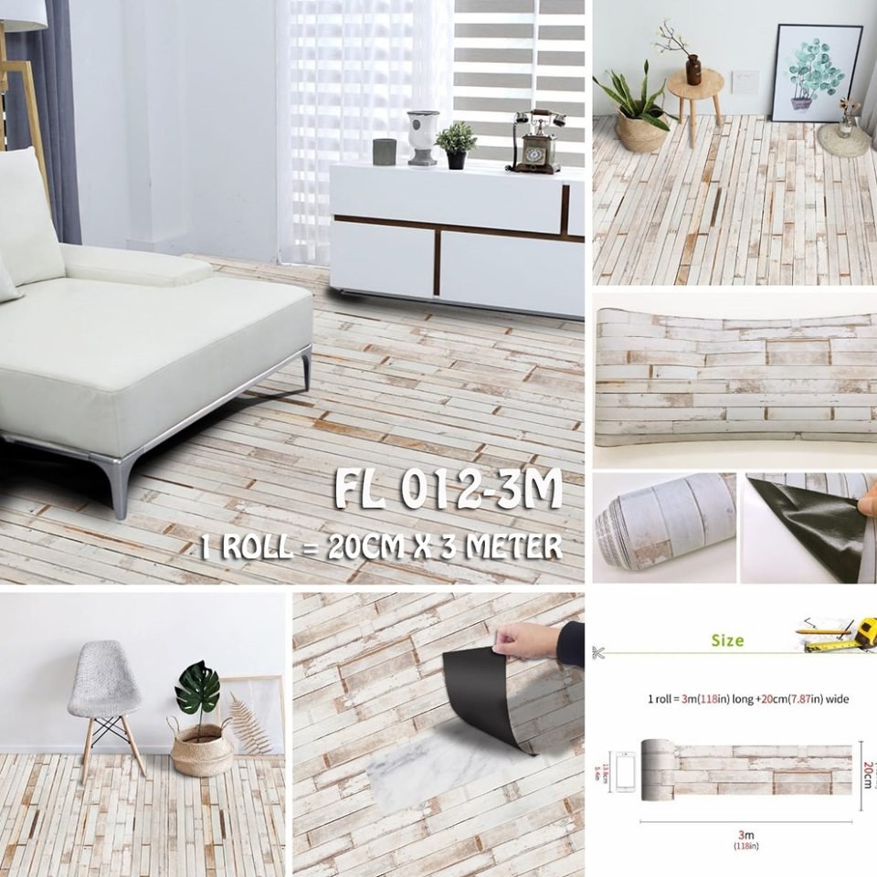 Wallpaper Lantai Sticker Lantai Fl 004 Kayu Putih Ukuran 20cm X Panjang 5 Meter