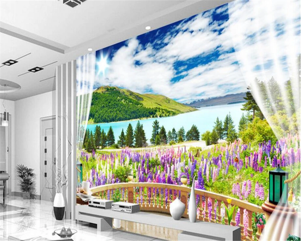 Us 8 25 45 Off Beibehang Wallpaper Anti Air Di Luar Ruangan Pemandangan Bunga Lavender Pemandangan Laut Latar Belakang Dinding Mural Papel De Parede